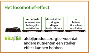 Bovendien werkt Organic Silicium bio-activated® als een locomotief en heeft het het vermogen om bepaalde actieve stoffen te transporteren en zo hun werking te versterken. Dankzij deze eigenschap heeft VitaSil een breed gamma aan producten kunnen ontwikkelen waarbij Organic Silicium bio-activated® wordt verbonden aan specifieke actieve stoffen.